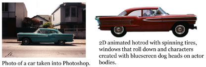 Check Out The Radio Interview New interviews and articles are now posted on MyFlik.com. Listen to Sherri's new radio interview on the show "If These Walls Could Talk" with the subject "What's Hiding in Your Favorite TV Shows?" Find out what you’re REALLY watching when you watch TV by joining Katherine Morris, the Setting Shrink, Emmy-award winning President of the Writers Guild of America, west, Patric M. Verrone, and Sherri Sheridan, Creative Director at Minds Eye Media. The Digital Filmmaking Revolution Susan Nixon from The Pearson Technology Newsletter, interviews Sherri Sheridan about her new book "Developing Digital Short Films" and the state of digital filmmaking today.  | These characters were created using bluescreen dog heads placed onto the body of a bluescreen actor. The set was built using Photoshop collage techniques from travel photos of Prague. The moving clouds are stock footage from Artbeats. | 1) What is Developing Digital Short Films about? This book fills a huge gap in the knowledge available to students and amateur filmmakers who often have to do almost everything when creating their own projects. I’m talking about people who have a $400 DV camera, a $1000 computer from Costco and very little or no budget to make a film. This book explores how to tell a visual story using digital tools to tell stories in new ways. Most people love to go to the movies and would like to make their own films, but get stuck on how to tell a good story and how to make it look interesting. Most of the books on filmmaking and digital filmmaking, focus on the technical aspects of what camera to use, what software button to push, how to get your film online, the latest features in this software package - these types of hard knowledge subjects. Developing Digital Short Films takes the reader through an extremely critical creative preproduction process, which is usually completely overlooked by the majority of amateur filmmakers. The reason most independent films fail is because they did not do enough – or hardly any - preproduction. 2) Well Sherri why is the preproduction process so critical? Because this is where the brilliance in the filmmaking usually occurs. Big feature films spend years in preproduction. The actual shooting only takes a couple weeks or months after the visual story planning phase. A good story is universal in some way. Everyone can relate to it emotionally. Anyone who has a story to tell can use the visual techniques in my book to make a music video, play, novel, screenplay, musical, video game, photograph, song, ballet, opera, or painting. That is how flexible it is to apply universal visual storytelling techniques. Universal metaphors and symbols cross over into everything, and when you mix digital tools with these ideas you automatically get a bunch of fresh ideas. Hitchcock use to say his films were already made before he touched a camera. He did so much preproduction and storyboarding that every shot was precisely planned – all the timing was worked out down to the second, with well thought out camera shot combinations, editing techniques, match cuts and narrative soundtrack layers. Most digital filmmakers spend a very small amount of time writing a script or planning shot sequences, and have stories that fall apart all over the place on the screen or seem empty, boring, predictable or impossible to watch. My book helps beginning filmmakers really think about lots of visually fresh creative ideas. I took 1000’s of universal storytelling techniques and folded them into a step-by-step visual preproduction brainstorming process. These ideas all had to be universal storytelling principals to make it into the book. I researched films, stories, TV shows, animations, commercials, songs, and myths from all over the world, then put together lists of universal techniques that helped spark original film ideas fast. 3) Developing Digital Short Films looks like a textbook with lots of project exercises. What types of students would find this book useful in their classes? Developing Digital Short Films is the book I wanted to be able to give my graduate 3D animation students. I was suppose to take them from a first semester Maya student to someone with a digital short film script and storyboards ready to go into production over the next two years. The films had to be under two minutes long because the students were learning 3D and that is all they could handle back then with the rendering times and processor speeds. These were their final thesis projects that needed to be planned out within 15 weeks. This was back in the late 90's at the Academy Of Art University in San Francisco when Kevin Cain was running the place. I was there for a few years so I got to watch a bunch of these students actually make their films. I started to really see what worked and what did not - along with everyone else since we were all learning to tell stories with this powerful new 3D character animation technology. Some of those students worked so hard on their films, and looked so happy when they turned out really good. This book tells a person everything they need to know to think up cool visual ideas to evoke a strong series of emotional responses in the audience – that is what great filmmaking is all about – getting people to really feel things while watching your movie. It also tells you how to do it with almost no budget except for the software and equipment. You could put together a feature film studio for about $5000 dollars right now, including the computer set up, camera, lights, tape and software. This is first time it's been this cheap to make a feature film and within the reach of almost anyone who really wanted to make one. It's like when DVD players started selling for $29 at Walmart and suddenly everyone had one. The same thing is going to happen with digital home movie studios. Not as many are going to make feature films as own a DVD player, but there will be a lot of new 