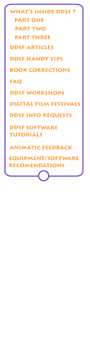![]() | Developing Digital Short Films: Articles & Samples From Book Amazon.com no longer does "Look Inside" for new books. The following sample sections from the book will help give you an idea of what is inside, and how this type of information will help you develop deeper and more emotionally powerful films. "Look Inside" the first ten pages of Chapter Two! Chapter One: • 48 Feature Films listed with corresponding themes for you to study Chapter Two: • Using 4 different types of metaphors and symbols to tell visual stories Chapter Three: • 48 Types of plot twists to include in your short film • 40 Plot Points For Feature Films Chapter Four: • 13 Dialogue techniques to make your characters sound real Chapter Five: More articles from each chapter will be posted soon... |
